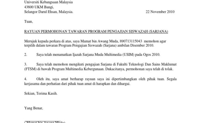 Contoh Surat Rasmi Permohonan Kemasukan Ke Universiti Sloppyploaty